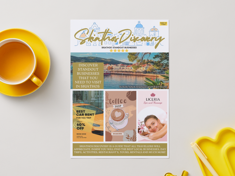 Skiathos Discovery is the perfect tool if you are looking to hit the tourist audience of Skiathos. Due to our magazine being placed in the main stay areas for tourists, we offer an avenue of marketing to spread the word about your business or event
